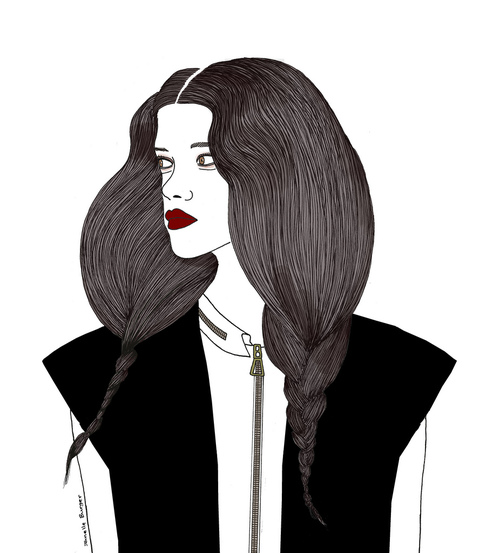 Gostei do traço, das cores e principalmente do efeito dos cabelos. Me lembrou o trabalho de Laura Laine (mostro o trabalho dela aqui em breve) só que mais “cru” e realista. Lindo!